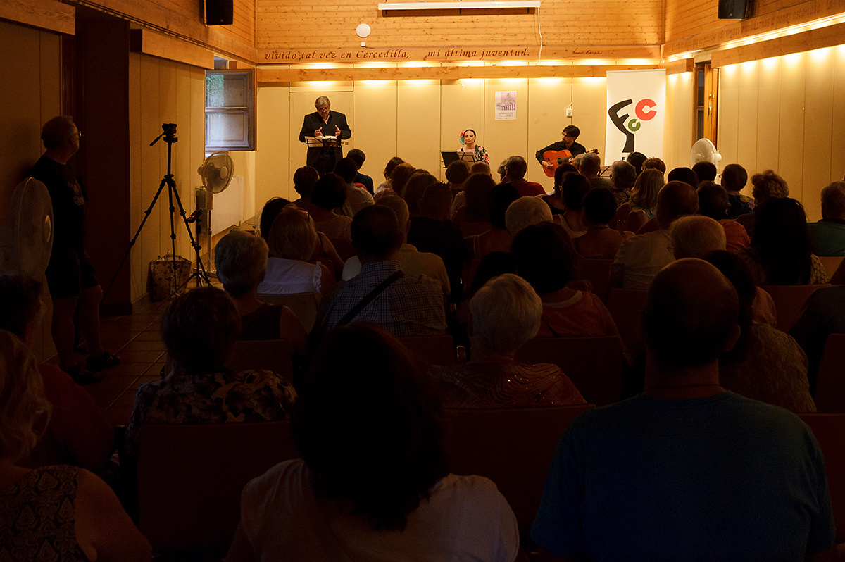 Crónica fotográfica de la 48 Semana Cultural (Fotografías de Daniel G. Pelillo) 5 agosto, 201821 julio, 2019 Lunes 30 de julio Inauguración de la Semana Cultural Presentación colectiva del Periódico/revista cultural El Papel de Cercedilla Martes 31 de julio Abuelos esclavos de Arturo Martínez Beatriz Ortega y Javier Páez (generacionART.es) Miércoles 1 de agosto Circo contemporáneo Piensa en Wilbur Jueves 2 de agosto Concierto Matías Ávalos y Luis Felipe Barrios Viernes 3 de agosto Recital de poesía y música Las mujeres de Lorca con la soprano Teresa Castal, el guitarrista Pablo Vega y el recitador Karmelo Peña El sábado 4 de agosto Cercerámica. Una exposición caminada Una intervención colectiva del taller de cerámica de la Asociación de Artesanos y Artistas de Cercedilla coordinada por Claudia Molpeceres El sábado 4 de agosto Concierto de Arpa 47 couleurs vibrent Vanessa Sheldon Sierra Musical Relacionado
