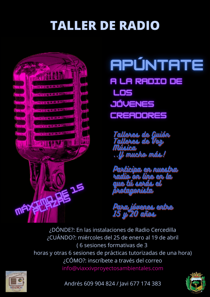 La Fundación Cultural de Cercedilla, en el marco de Radio Cercedilla, empezamos el año colaborando con la Concejalía de Juventud del Ayuntamiento de Cercedilla en un taller de radio gratuito para jóvenes de entre 15 y 20 años.